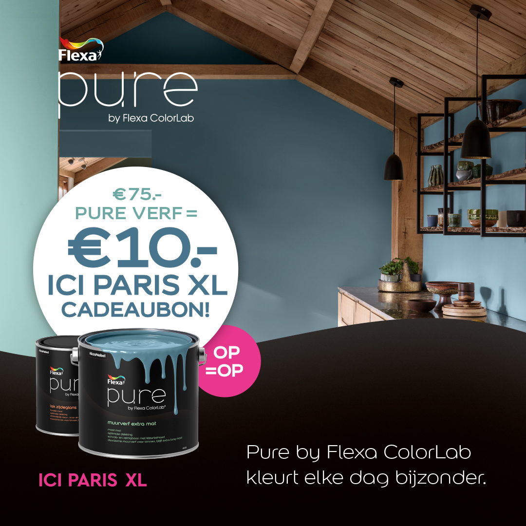 Koop voor €75,- aan Pure by Flexa ColorLab in onze winkel in Middelbeers en krijg een gratis €10,- cadeaubon van ICI PARIS XL. Verwen jezelf of iemand anders, maar wacht niet te lang, OP=OP!